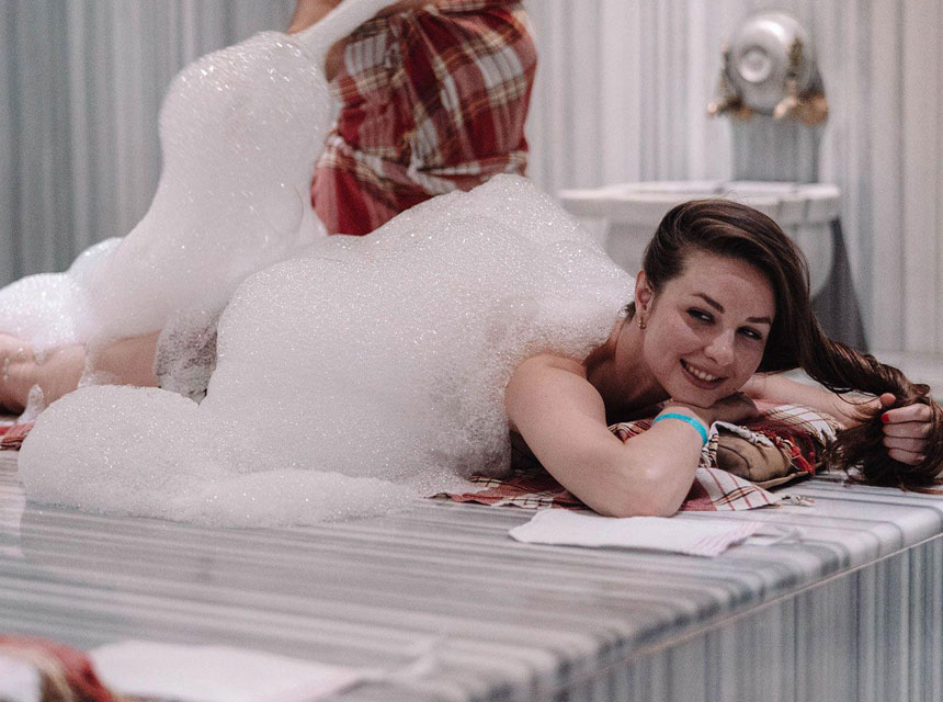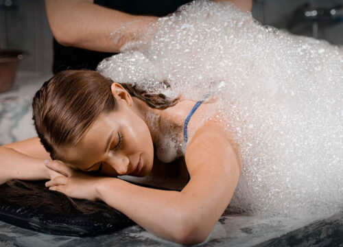 - Masaj: Köpüklerle yapılan masaj, yumuşak hareketlerle yapılır ve bu sırada vücudunuzun tüm bölgelerine özenle uygulanır.